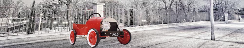 Los juguetes son réplicas de los autos clásicos que marcaron época. Coches de pedales de estilo retro fabricados en metal. Te encontrarás algunos del año 1930, coches de bomberos, de carreras…¡Encuentra el tuyo! Las edades aconsejadas para un coche de pedales es de los 3 a los 6 años.
