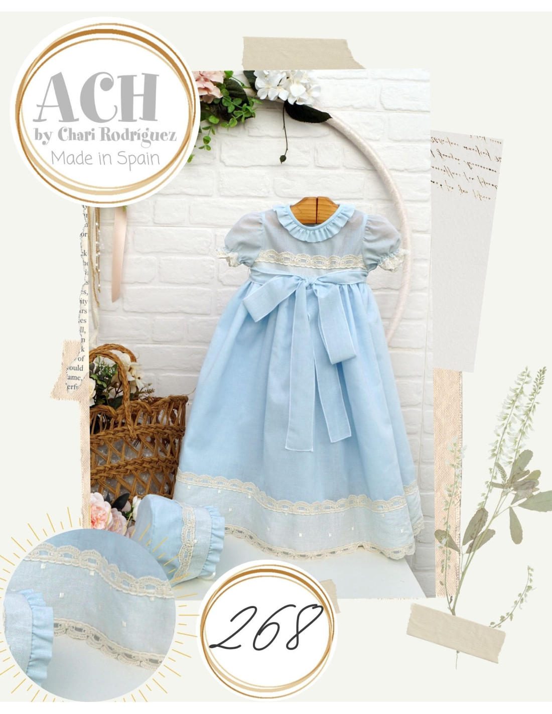 Conjunto de Batón y gorro de primera puesta, confeccionado de forma artesanal por Artesanía Chari, ideal para vestir bien a tu bebé de una forma cómoda, salir del hospital o dar un paseo con tu bebé