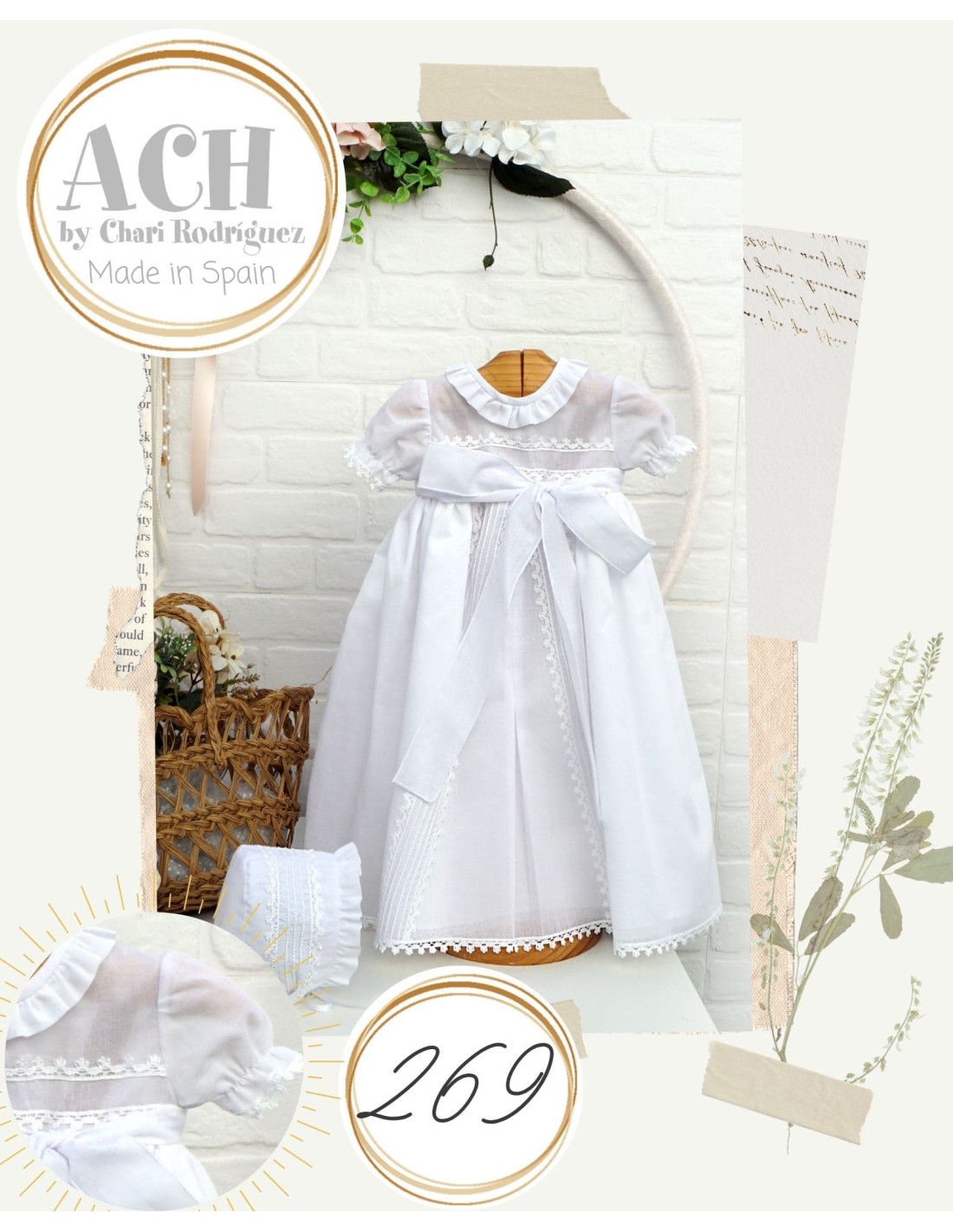 Conjunto de Batón y gorro de primera puesta, confeccionado de forma artesanal por Artesanía Chari, ideal para vestir bien a tu bebé de una forma cómoda, salir del hospital o dar un paseo con tu bebé