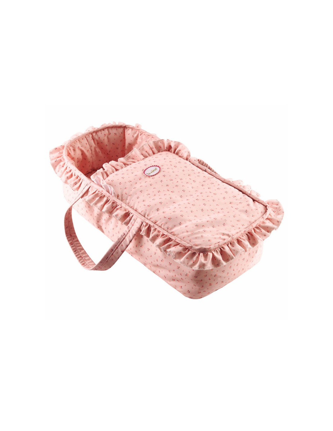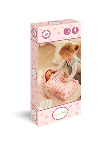 - Con el capazo de tela Olivia estampado en rosa, con asas puedes transportar a tus muñecas mientras duermen de la forma más fácil.