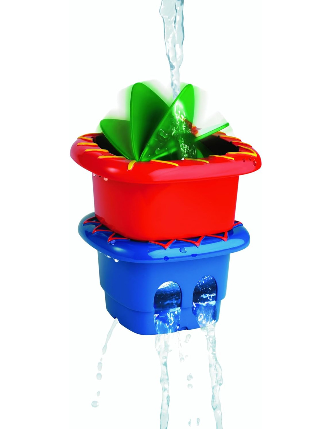 - La noria de agua se ajusta a las esquinas del vaso más grande para mantenerla segura mientras se juega con ella.